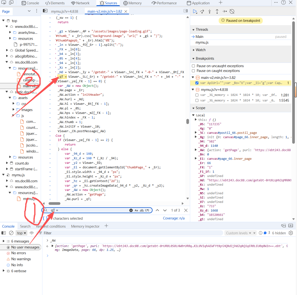 在此处设置断点,并进行向下滑动来使得JS继续运行。