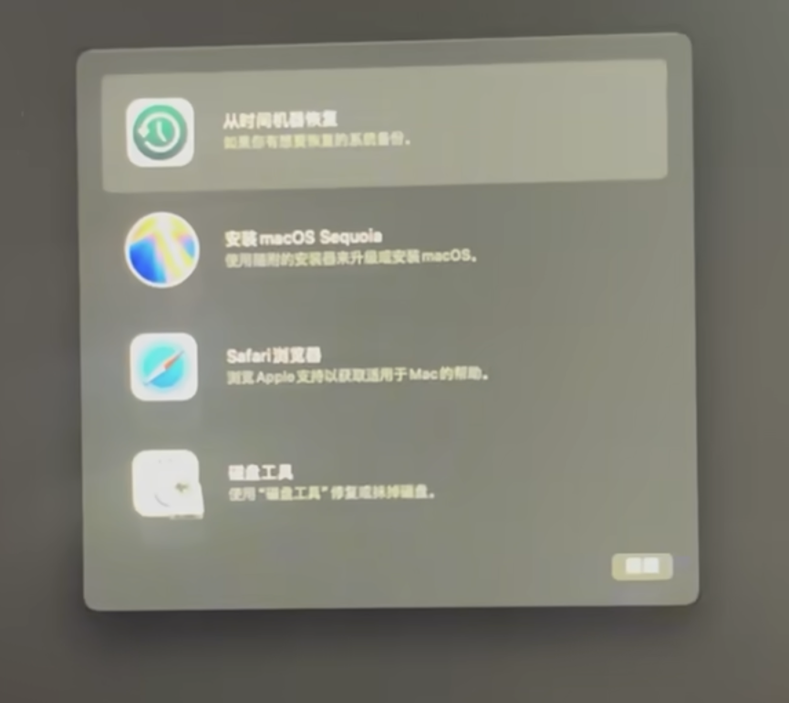 重启电脑会显示以下类似的选项,选择最右侧的那个彩色选项安装工具。