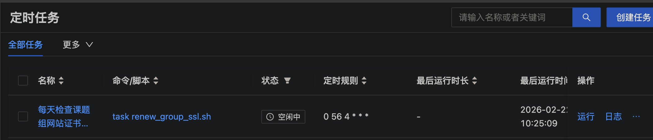 碎碎念: 作为一个热衷于折腾 HomeLab 和各种自动化服务的技术人,我的服务器和域名之前都实现了自动化的证书续签。但是!!!!课题组的网站所有的证书都是需要手动维护的。 但这带来的痛苦是显而易见的:课题组的域名和服务器分布在不同的腾讯云账号下,而且随着项目的推进,像