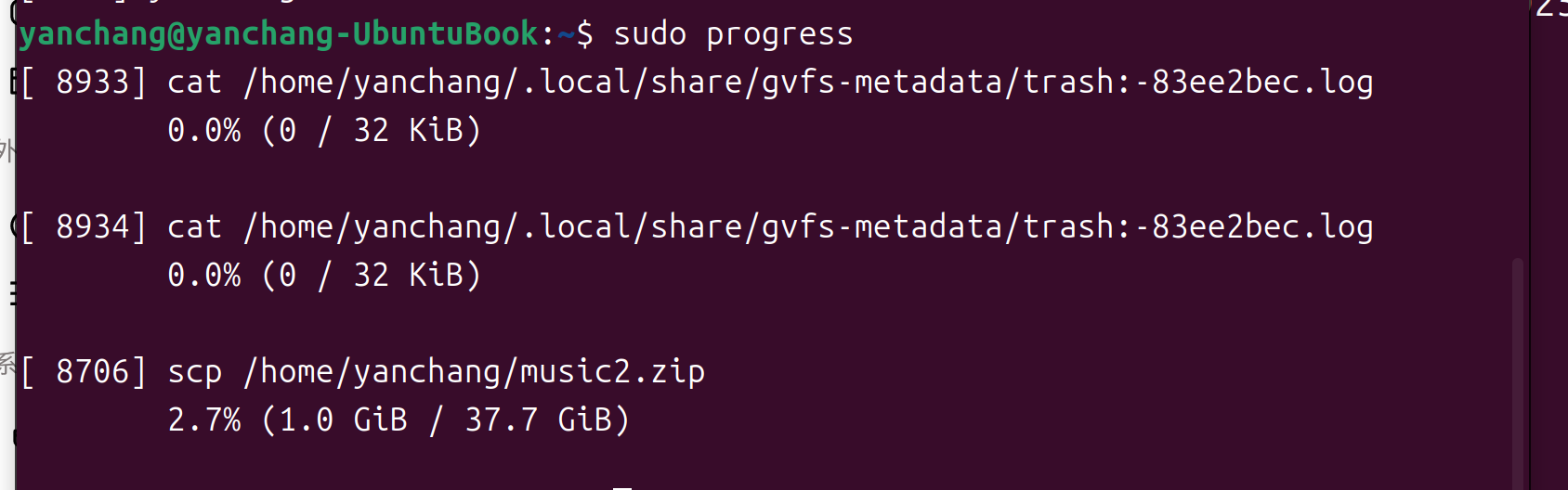 它的黑魔法在于: 它不需要你重新运行命令。哪怕你的 mv 已经跑了 10 分钟了,你在另一个窗口运行 progress,它依然能准确地告诉你:现在跑到百分之几了,还需要几分钟跑完。