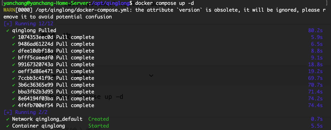 yanchang@yanchang-Home-Server:/opt/qinglong$ docker compose up -d