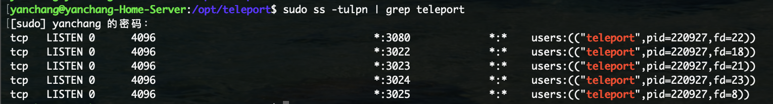 sudo chown -R yanchang:yanchang /opt/teleport