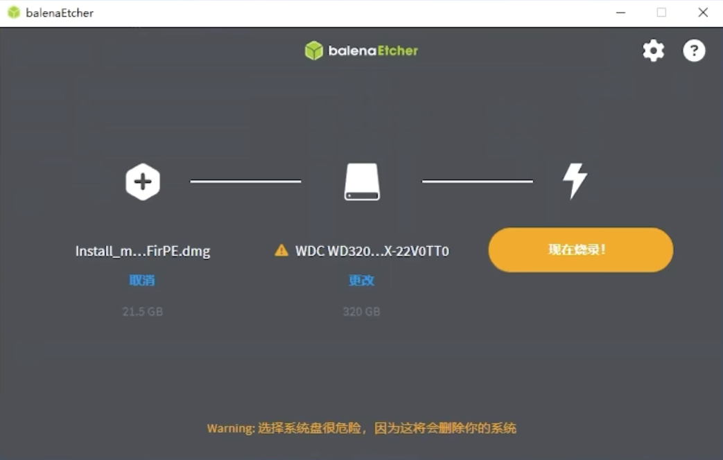 由于当前MACOS 15.5镜像大小已经来到了18G左右,因此使用的安装U盘或者盘大小不能低于18G,首先下载使用opencore引导的系统镜像文件。使用balenaEtcher刻录工具将系统镜像刻录到目标盘中。