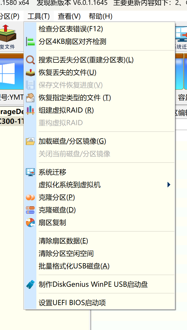 点击上方菜单栏的工具、设置UEFI BIOS启动项