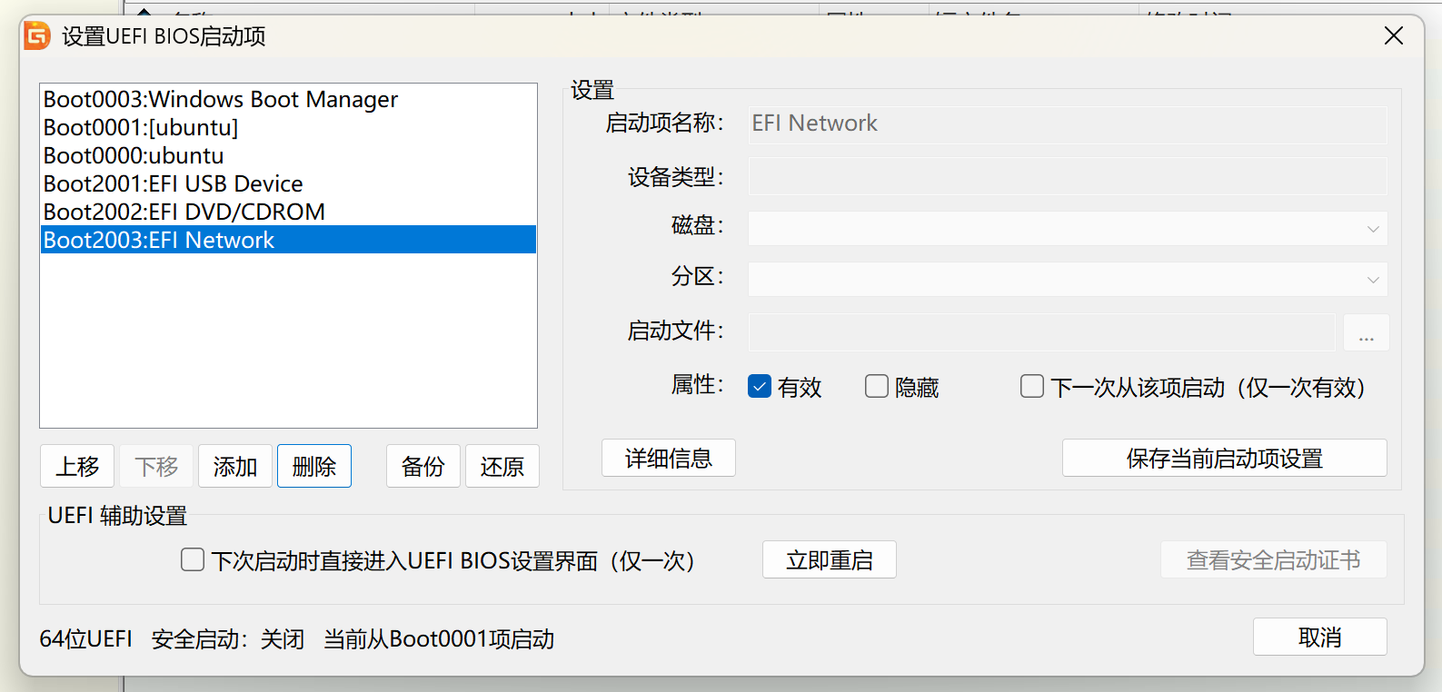 然后根据配置磁盘环节,将引导项替换为新复制进去的efi文件即可。
