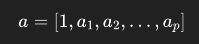 代码 _burg_ar() 返回的不是直接写成教材里 ϕk\phi_kϕk 形式的参数,而是这一套 AR/PEF 多项式系数: